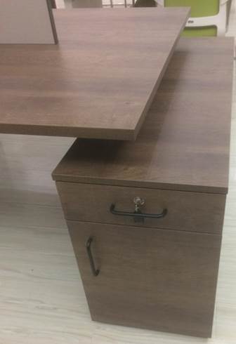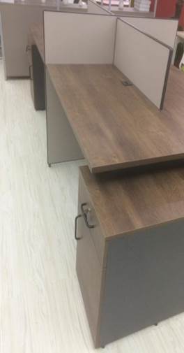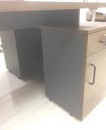 2)所用的板材,基材为刨花板,面板为双面压光木纹阻燃生态板(具体颜色根据色板确认),台面板厚度≥33mm,腿立板厚度≥25mm,抽屉、背板、其他侧板、分隔板等厚度均≥18毫米以上。环保标准须达到国家E1级以上。板材上要带暗标。