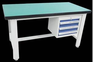 4、放置台右下采用吊三抽架构,抽屉外形尺寸不小于450*470*410(高*宽*深),抽屉采用优质三节导轨,抽拉自如、无阻塞感,带锁;单抽承重不低于40公斤,各抽屉面板采用全长铝合金拉手。 5、放置台安装调试完毕,应稳定、可靠,放置其上1000公斤以下设备运行时(如小型弓锯床)无晃动。 6、投标方提供的放置台必须为品牌产品,要求提供相对应产品的彩色图片资料。 参考结构图:
